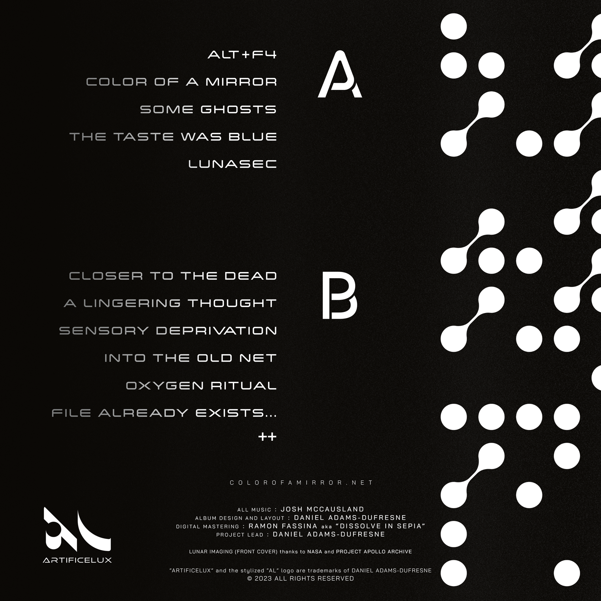Limited edition pressing of the Color of a Mirror ambient soundtrack in 180g natural PVC, for a high-quality vinyl sound wrapped up in a non-traditional, ghostly-white look. The perfect pairing to a physical copy of the novel Color of a Mirror, for the fully analog immersion in this dark science fiction universe.